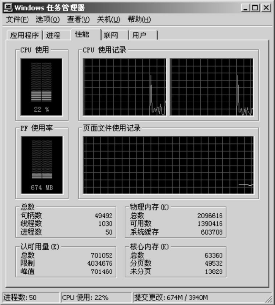 注意:任务管理器很常用,也非常强大,它可以显示系统的网络负载、任意进程的CPU占用率、内存使用量及I/O使用情况。