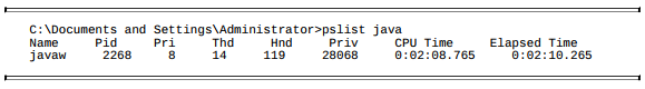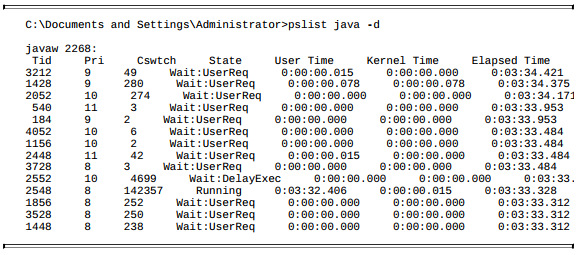 注意:pslist是Windows下的命令行工具,它可以显示进程乃至线程的详细信息。