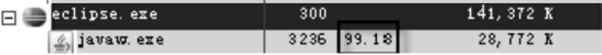 首先运行HoldLockMain,在ProcessExplorer中可以看到,该Java程序占用了很高的CPU,如图14所示。