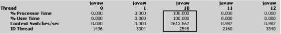 在报表中可以很容易找到,在当前的Java应用程序中,线程ID为2548的线程占用了很高的CPU,如图11所示。