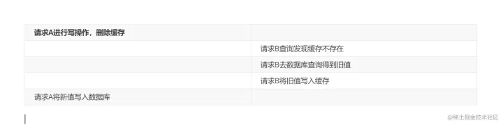 先删除缓存后更新数据库的话,后者失败,情况是这样的: