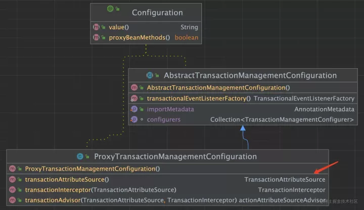 从类图中可以看到,事务代理管理配置类主要定义了三个Bean对象: