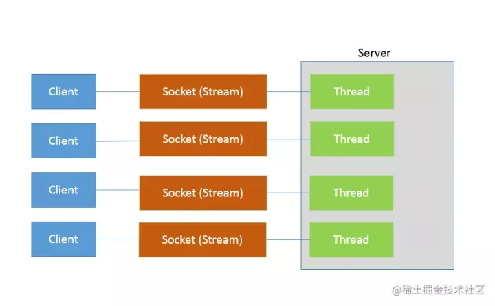 大家知道 Java 语言目前的线程实现是比较重量级的,启动或者销毁一个线程是有明显开销的,每个线程都有单独的线程栈等结构,需要占用非常明显的内存,所以,每一个 Client 启动一个线程似乎都有些浪费。