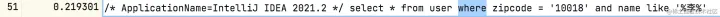 select * from user where zipcode = '10018' and name like '%李%'; 复制代码
