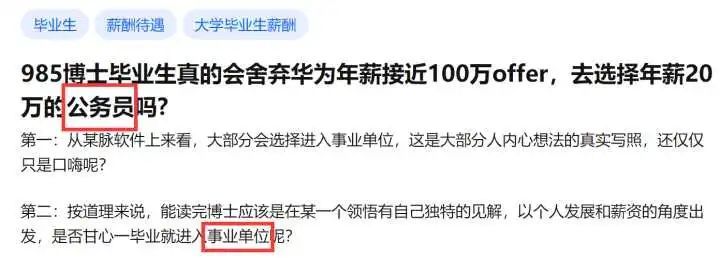 第二:按道理来说,能读完博士应该是在某一个领悟有自己独特的见解,以个人发展和薪资的角度出发,是否甘心一毕业就进入事业单位呢?