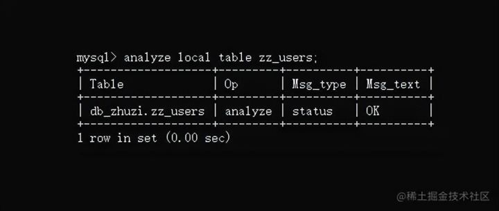 analyze [local | no_write_to_binlog] table 表名1; 复制代码
