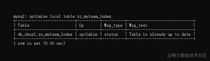 这里值得一提的是:此优化非彼优化,并不意味着你的表存在性能问题,执行后它会自动调优,而是指清除老数据,执行效果如下: