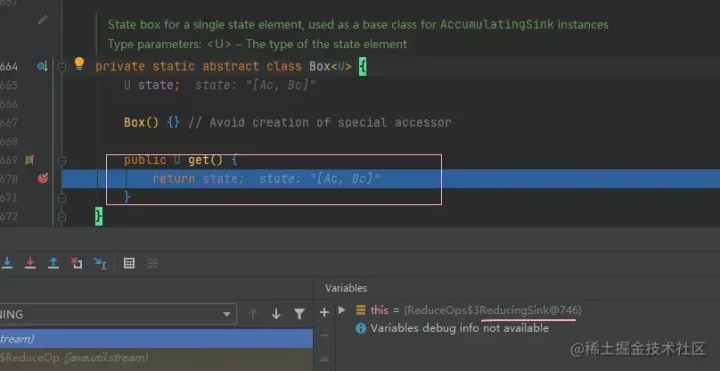 获取数据,ReducingSink 继承了 Box 这个抽象类,最后 get 方法得到结果。