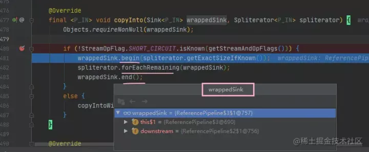 主要记住这个 wrapSink 方法 和 copyInto 方法。 一个套娃,一个调用 begin,accept,end 等方法。