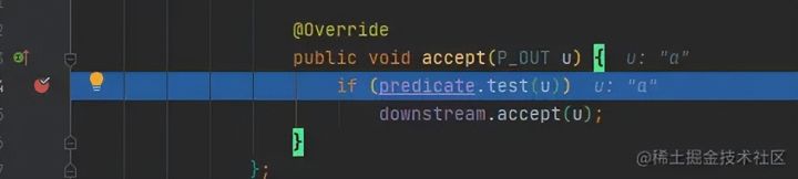注意,此时没有继续调用 downstream.accept 方法! 意味着,我们代码中的 5 个中间步骤只执行了前 3 个。