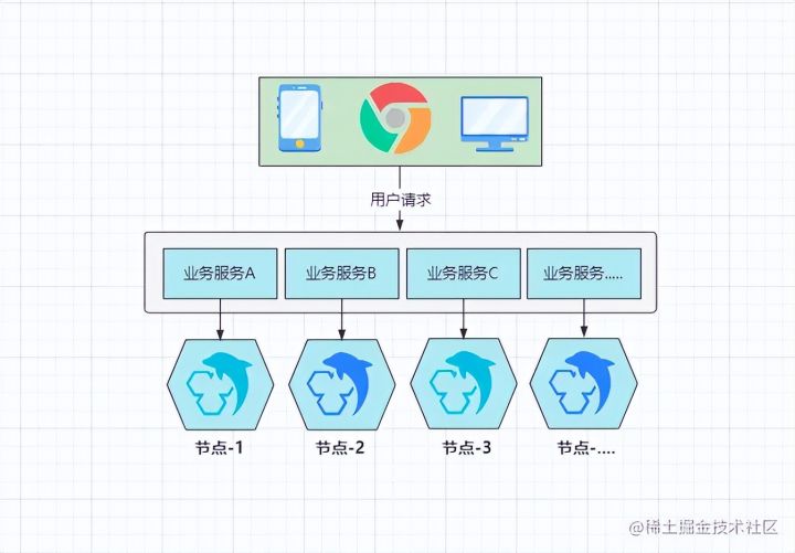 分库分表相信每位接触过数据库的小伙伴都听说过,这实则是一种分布式存储的思想,如下: