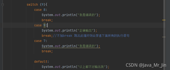每一个case定义元素后都必须在后面进行添加 break; 语句进行跳出当前循环,如果不添加,判断语句进行会穿透下面的执行语句。