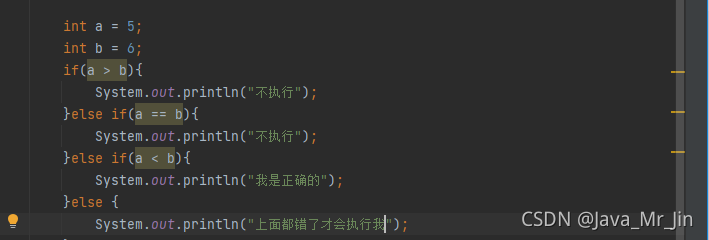 if else if else 结构:此结构可以设置多个判断语句,进行多个判断,满足哪个执行哪个。如果都不满足则执行最后的else语句