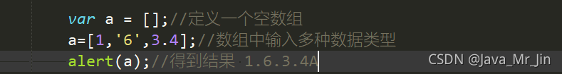 第一种数组定义方式:比较便捷 直接使用 var a = [];