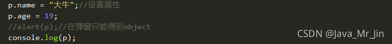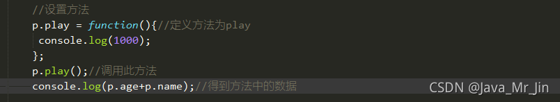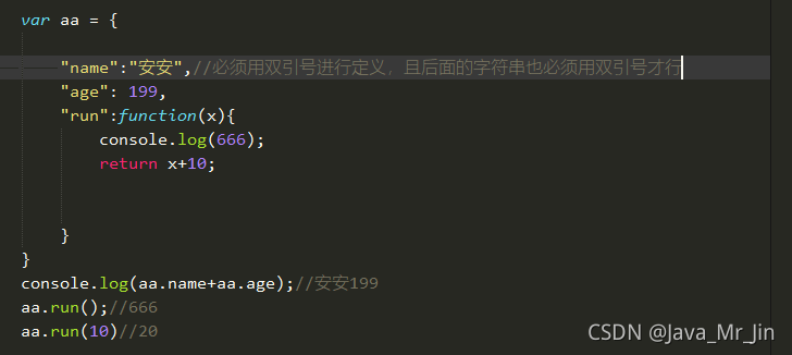 第二种定义方式:直接通过 var 对象名字 = { 定义属性方法等 }