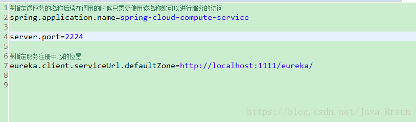 4.application.properties配置,制定注册中心位置,名称也很重要,在后面调用服务的时候要用到,其次端口号不能重复