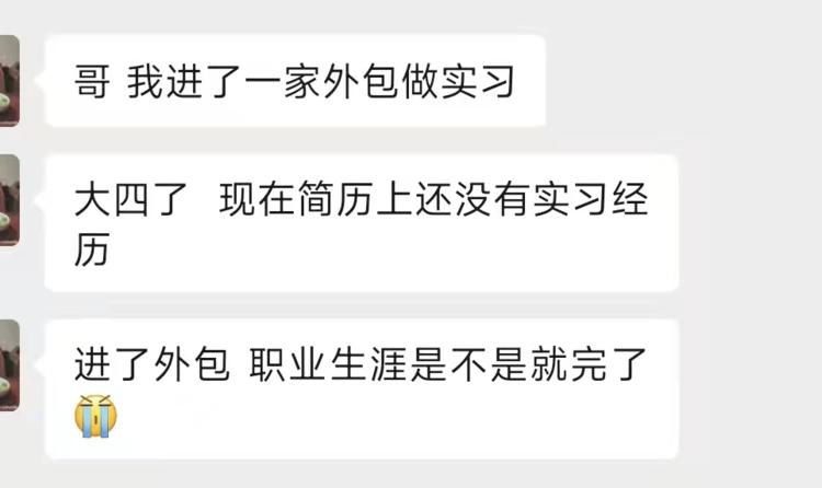 比如说这位读者,他就问我“进了外包,职业生涯是不是就完了😭”,言语之间充满了自卑和对外包的恐惧,
