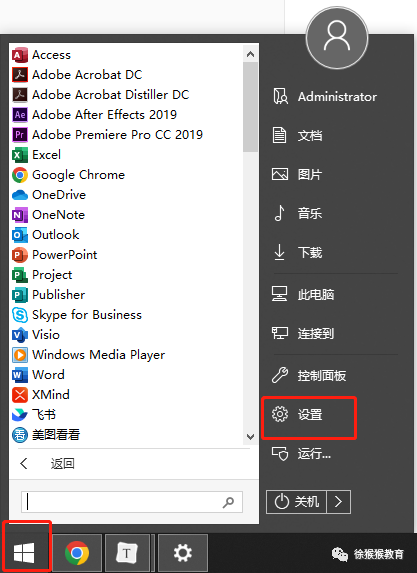 - 在左下角开始菜单栏中点击**「设置」**