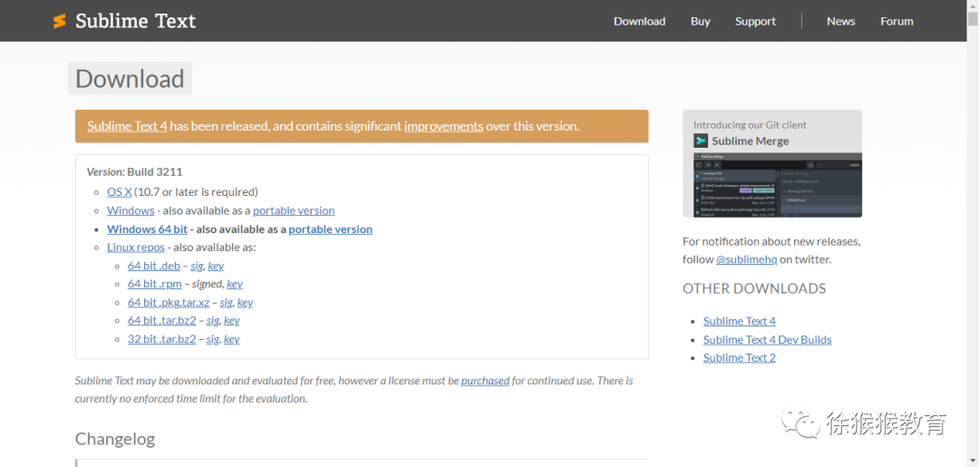 进入Sublime Text官网,选择对应版本下载[https://www.sublimetext.com/3]