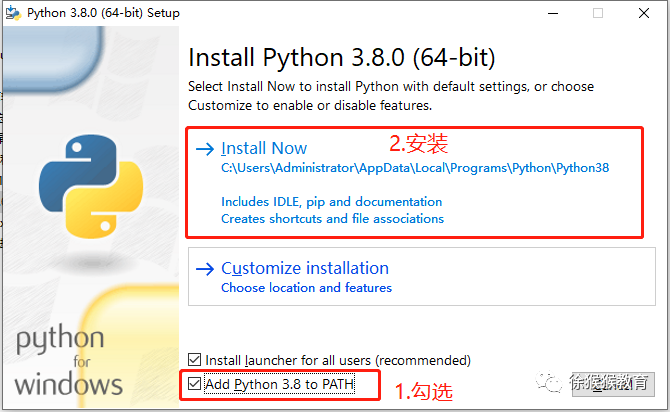 注意,**「Add Python 3.8 to PATH」**一定要勾选!!!