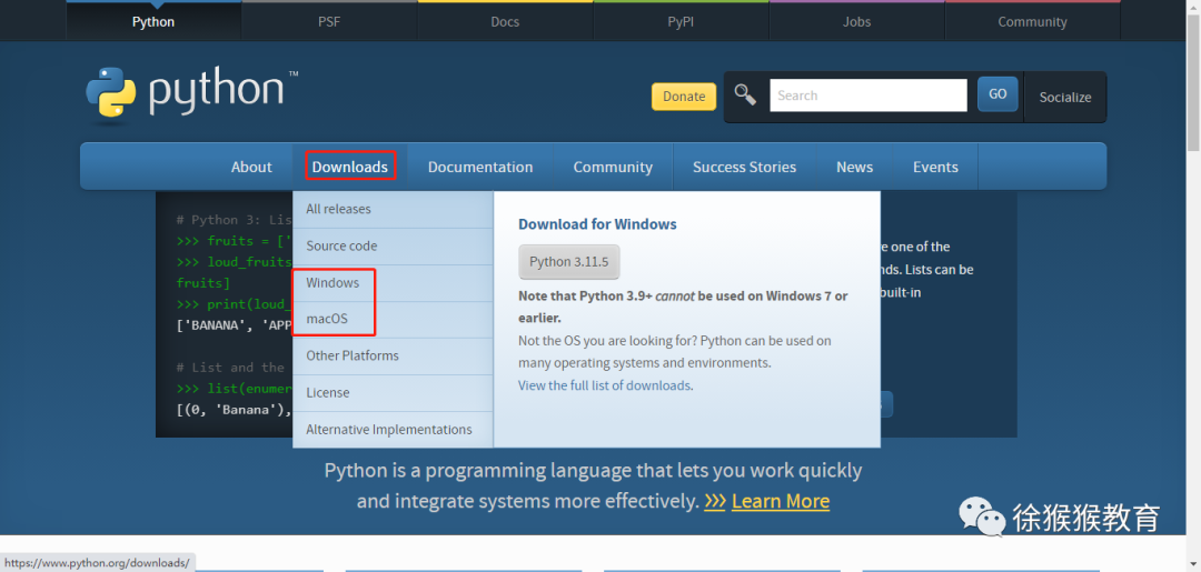 进入Python官网,下载对应版本[https://www.python.org/]