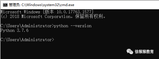 python --version,敲击回车键,看到如下信息,说明已成功安装。