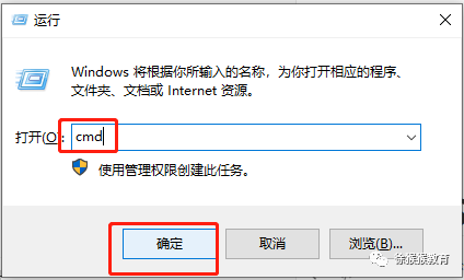 Win + R键后,在左下角弹出的窗口里输入cmd,点击确定,打开命令行程序。