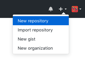 仓库( repository),可理解为储存代码的场所,点击个人主页的右上角的加号,再点击 New repository,即可创建新的仓库: