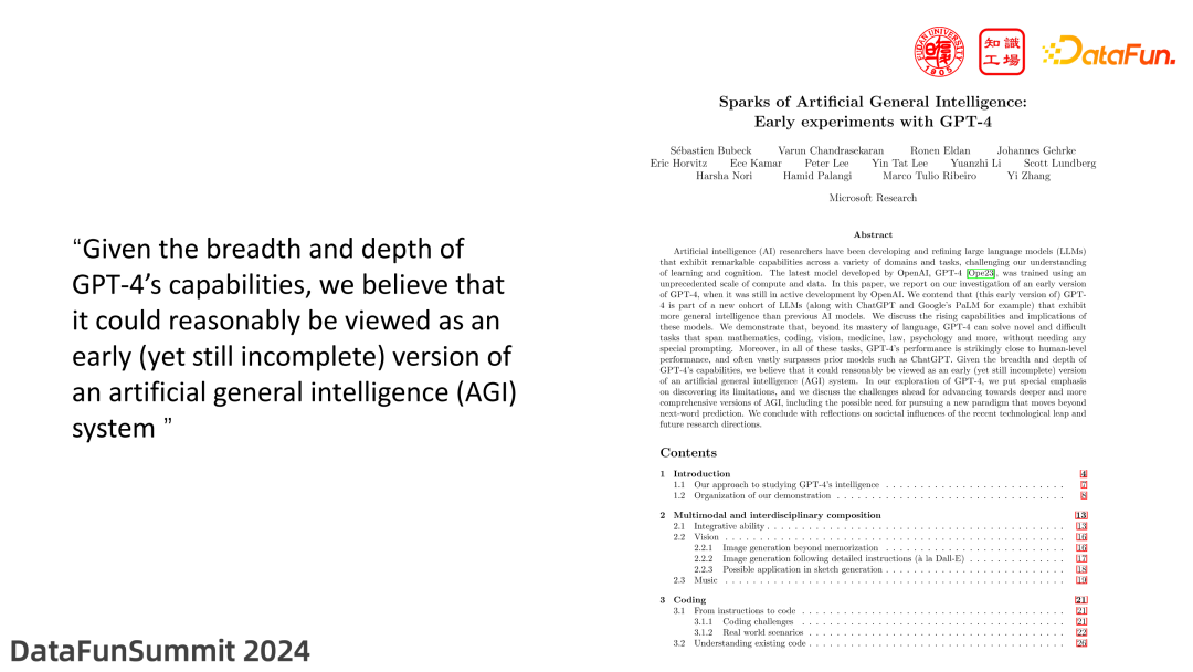 来自 GPT4 的技术报告中指出,GPT4 仍处于通用人工智能(AGI)的初级阶段。而目前研发中的 GPT4.5 或 GPT5 则已展现出了 AGI 的某些特征。