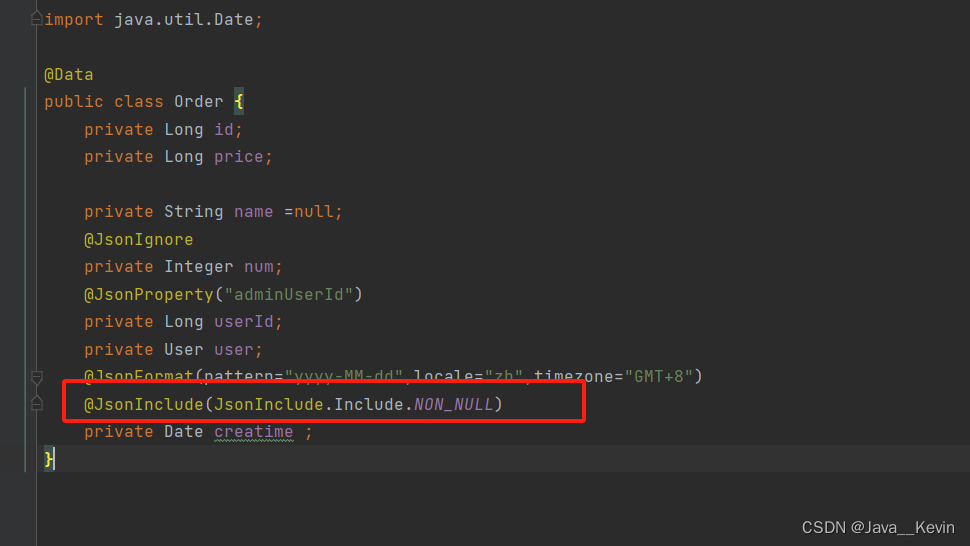 3. 字段为空字段则不返回:@JsonInclude(JsonInclude.Include.NON_NULL)