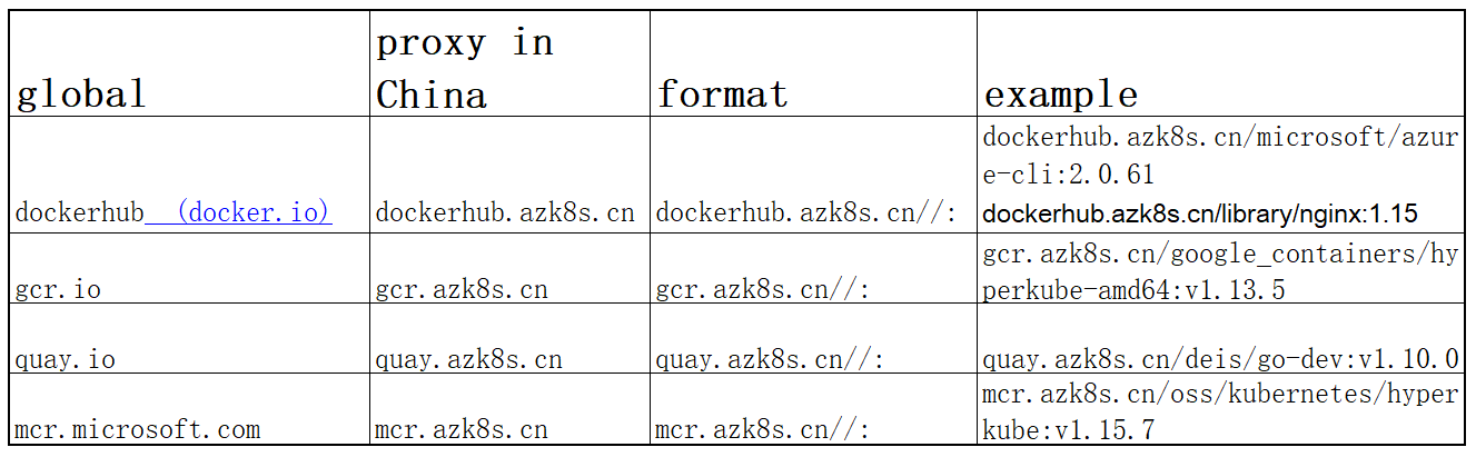 因此,我们可以使用“mcr.azk8s.cn”来替代官方提供的“mcr.microsoft.com”源: