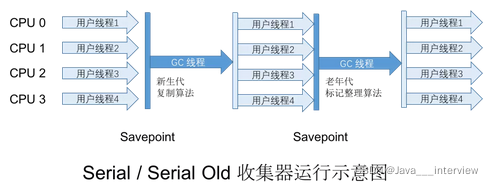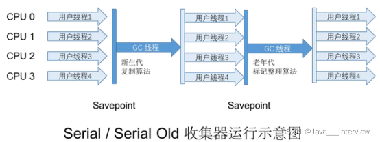 这是一个单线程收集器。意味着它只会使用一个 CPU 或一条收集线程去完成收集工作,并且在进行垃圾回收时必须暂停其它所有的工作线程直到收集结束。