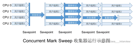 CMS (Concurrent Mark Sweep) 收集器是一种以获取最短回收停顿时间为目标的收集器。基于 标记 —— 清除 算法实现。