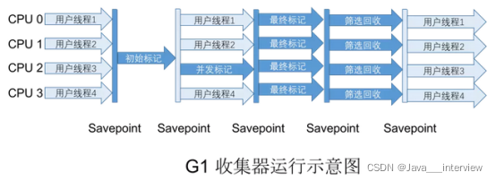 优点:并行与并发、分代收集、空间整合、可预测停顿。