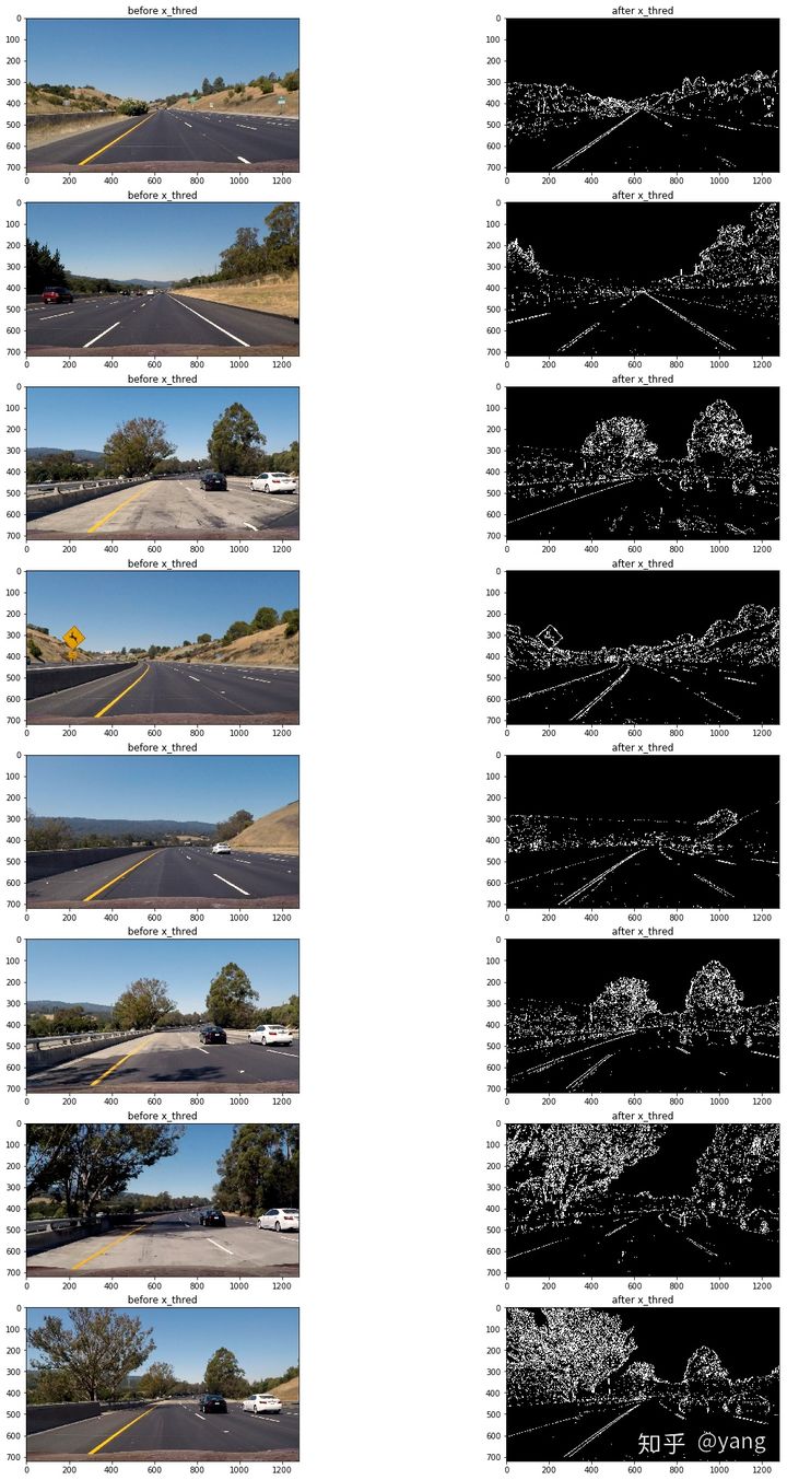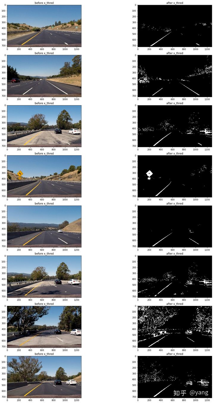通过测试发现使用x轴方向阈值在35到100区间过滤得出的二进制图可以捕捉较为清晰的车道线: