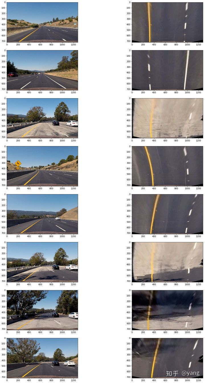- 使用透视变换(perspective transform)得到二进制图(binary image)的鸟瞰图(birds-eye view).