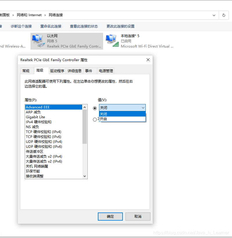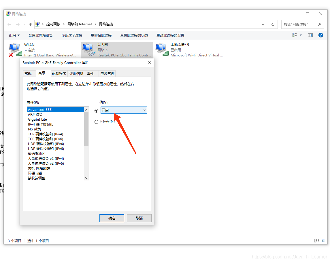 6.在高级选项中,查看Advanced EEE是否为开启状态,选择开启,然后确定。