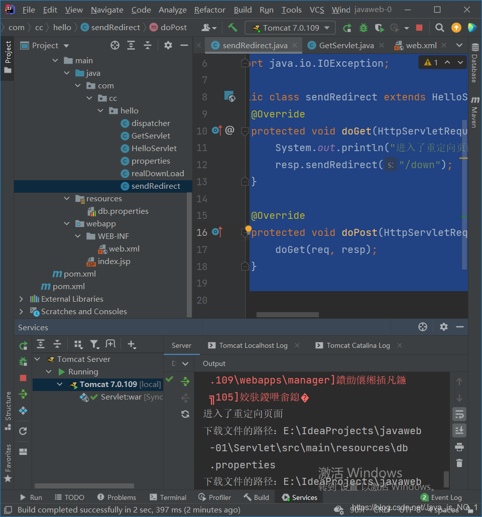 <servlet-class>com.cc.hello.sendRedirect</servlet-class>