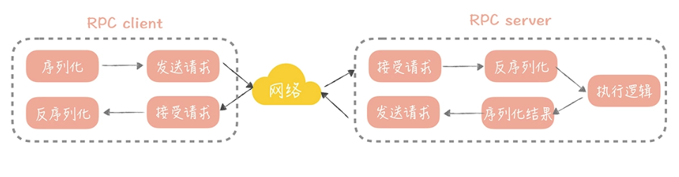 在一次 RPC 调用过程中,客户端首先会将调用的类名、方法名、参数名、参数值等信息,序列化成二进制流;