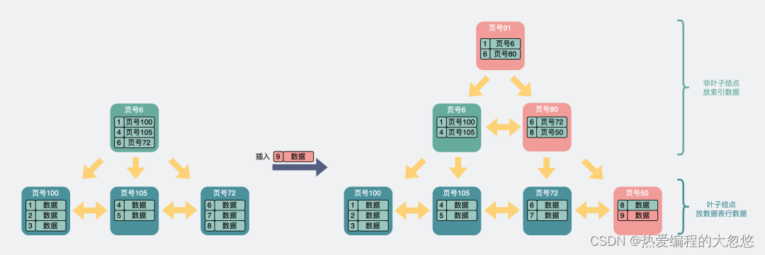 当我们向数据库表不断插入记录时,为了维持B+树的平衡,B+树会不断分裂调整数据页。