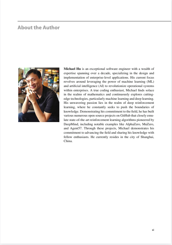 The Art of Reinforcement Learning 侧重于解释算法及其背后的直觉, 包括可用于实现 RL 算法的实用源代码示例。完成本书后,您将对强化学习背后的概念、数学和算法有深入的了解,使其成为 AI 从业者、研究人员和学生的重要资源。