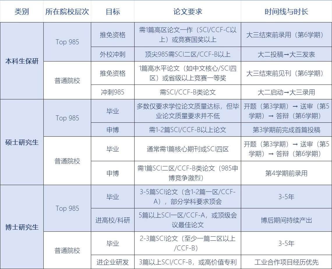 ✅ 本科保研:Top985 卷 SCI 一二区 / CCF AB类,大二启动刚刚好;