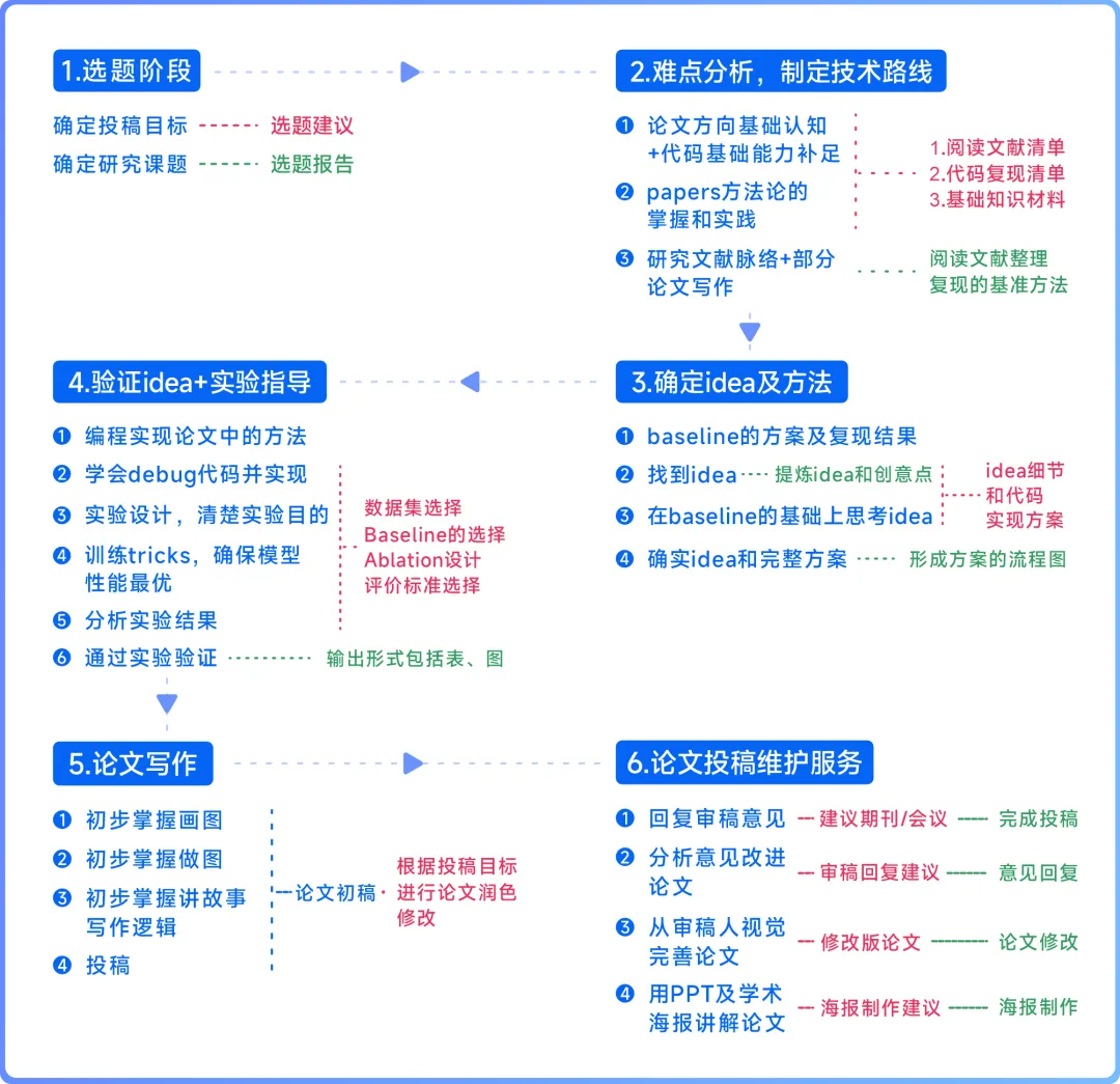 确保每个阶段交付质量。在选题、创新点、实验、写作、投稿每个关键环节,都需学员确认满意后,才会推进下一步,最大程度保障最终成果符合预期。