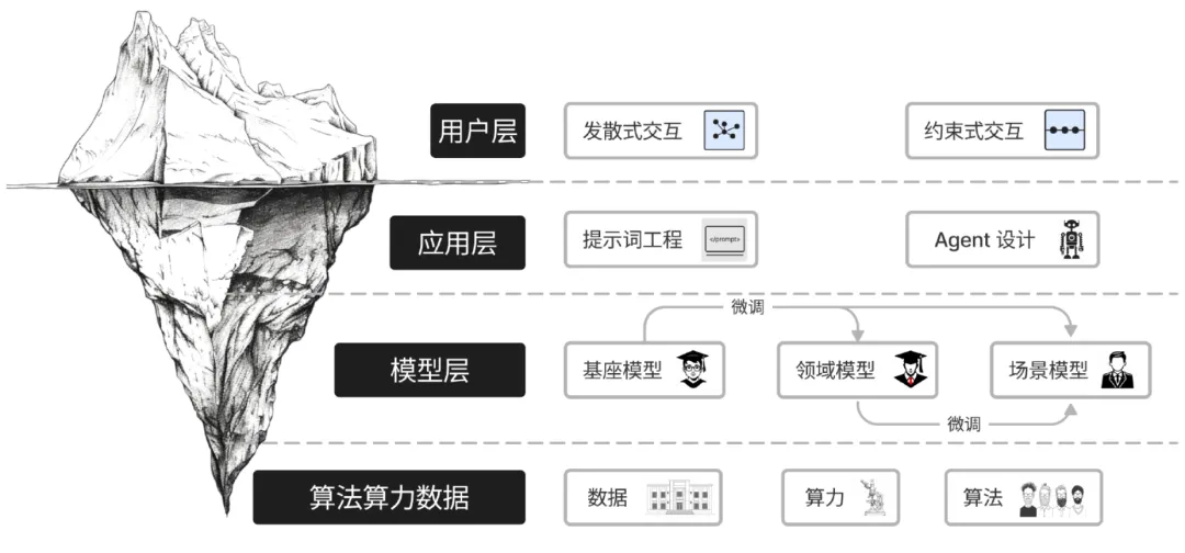对个人而言,AI时代的机会需要用分层视角来看待行业。不需要每个人都去研发底层模型,更实际的机会在于: