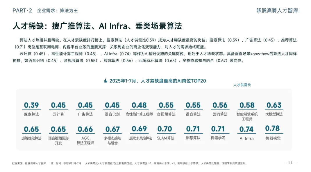 AI技术的快速演进也推动人才需求的深刻变化。从大模型基础设施的投入竞争,到AI Agent的商业化推进,再到超级应用的海外拓展,企业对稀缺人才的需求日益增强,人才画像日益清晰: