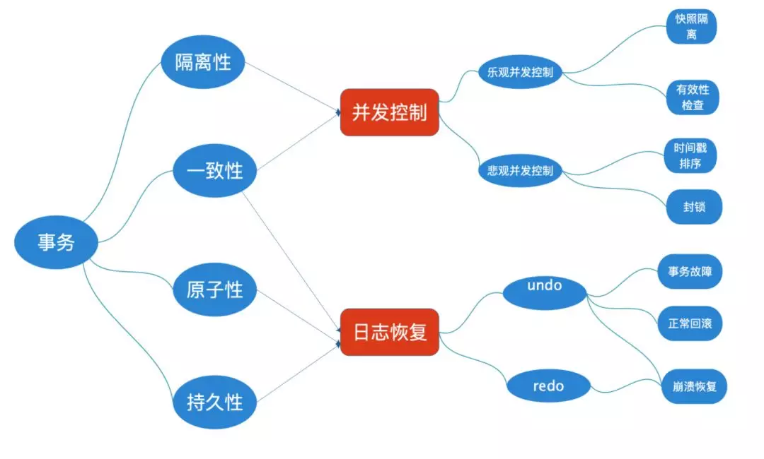 ACID是事务的基本特性,数据库系统是通过并发控制技术和日志恢复技术来对事务的ACID进行保证的,从而可以得到如下的关于数据库事务的概念体系结构。