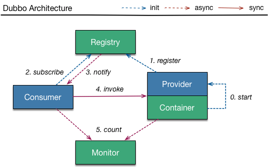 - Notify: 通知.当Provider的信息发生变化时, 自动由Registry向Consumer推送通知.
