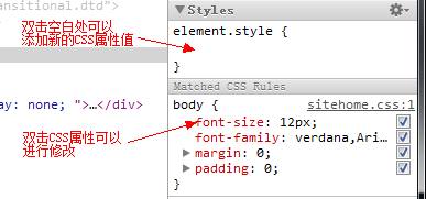 Elements标签页的右侧可以对元素的CSS进行查看与编辑修改:
