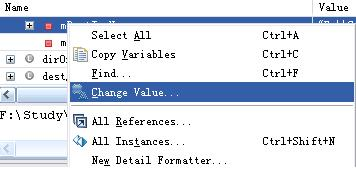 我们可以在变量上右键,选择"Change Value…" 在弹出的对话框中修改变量的值,