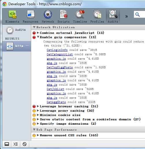 这个对于优化前端页面、加速网页加载速度很有用(相当与Yslow):